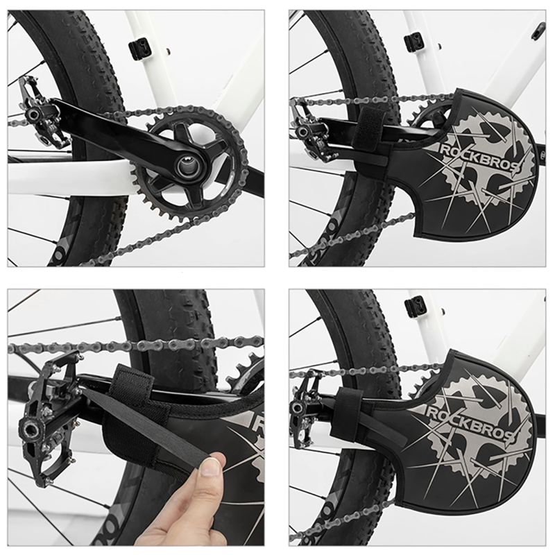 - Elastische Klettverschlüsse: ermöglichen eine schnelle Anpassung der Abdeckung und eine stabile Befestigung an der Kurbelgarnitur.