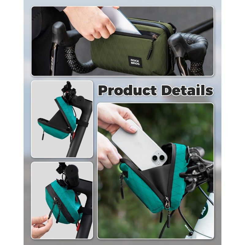 Die große Öffnung und der Doppelreißverschluss erleichtern den Zugriff auf Ihre Sachen, und die erhöhten Kanten an beiden Seiten des Lenkers der Fahrradtasche verringern das Risiko, dass Gegenstände herausfallen, erheblich.