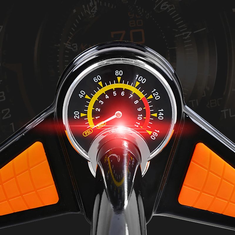 Rockbros GP6532B Standpumpe mit Manometer – Schwarz und Orange
