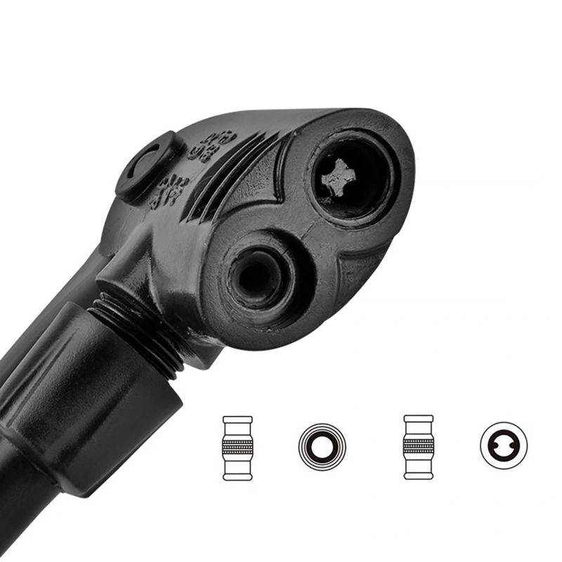 Die Pumpe ist mit Schrader- und Presta-Ventilen kompatibel, die zu den gängigsten Ventiltypen an Fahrrädern zählen. Das bedeutet, dass Sie mit einem einzigen Werkzeug bequem verschiedene Fahrradmodelle warten können.
