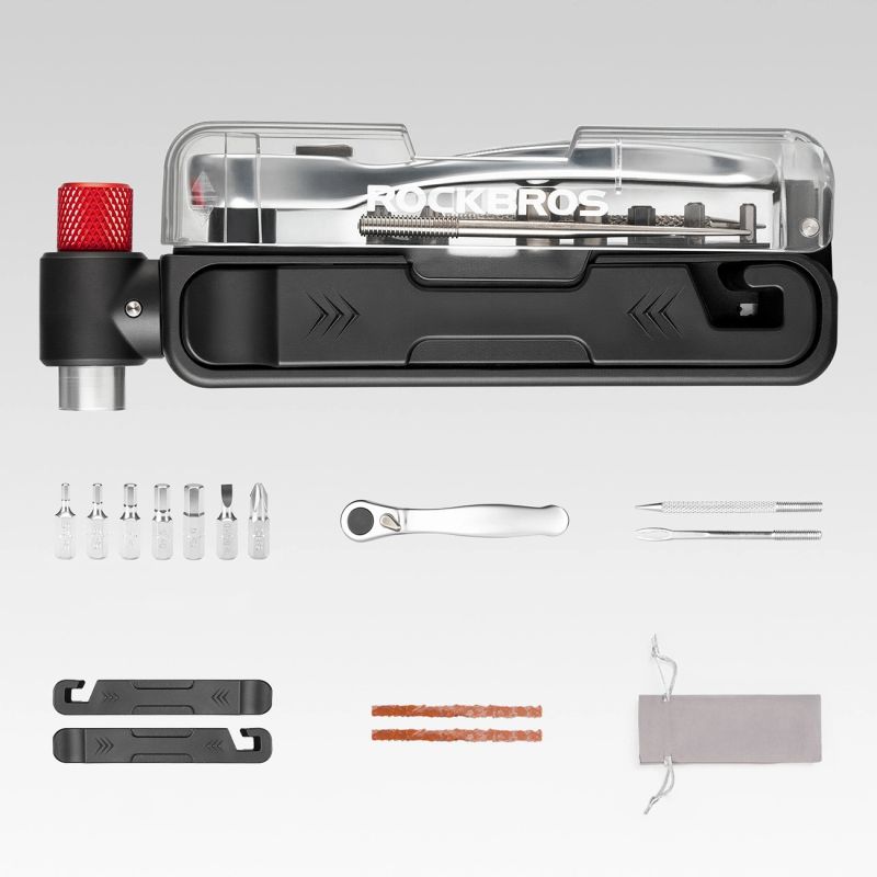 Rockbros Multitool-Fahrradwerkzeugset mit CO2-Pumpe und Ratschenschlüssel – Schwarz