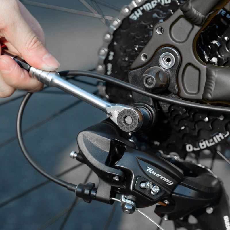 Das Rockbros-Set enthält alle Werkzeuge, die Sie für Einstellungen und kleinere Reparaturen am Fahrrad benötigen. Damit können Sie Schrauben an Vorbau, Lenker, Sattelstütze oder Bremsen auch während der Fahrt schnell festziehen.