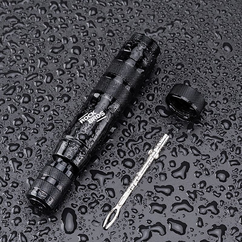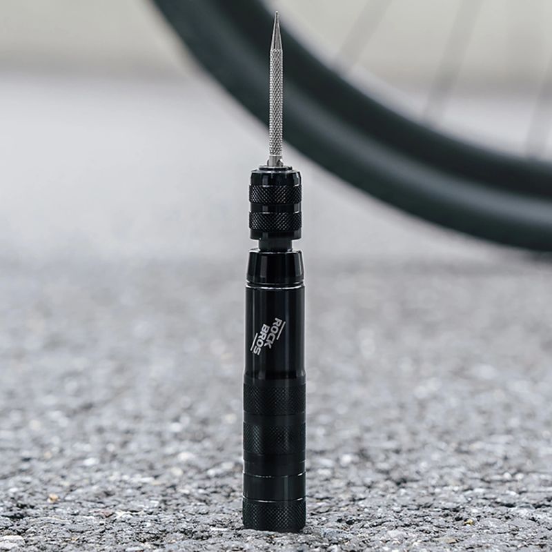 Das Rockbros Tubeless-Reifenreparaturset ist ein kompaktes, robustes und zuverlässiges Werkzeug, das jeder Radfahrer zur Hand haben sollte. Es besteht aus einer langlebigen Aluminiumlegierung und ist mit gehärteten Kohlenstoffstahlelementen ausgestattet. Es ermöglicht eine schnelle und effektive Reparatur von schlauchlosen Reifen unter allen Bedingungen. Dank dreier Werkzeugspitzen und fünf Dichtbändern aus hochwertigem vulkanisiertem Gummi ist es mit den unterschiedlichsten Ausfällen bestens vertraut. Alles ist in einem leichten und handlichen Gehäuse untergebracht, dessen Schraubdeckel Schutz vor Staub und Wasser bietet. Der ergonomische Griff mit Anti-Rutsch-Struktur ermöglicht eine einfache Handhabung und das Schnellmontagesystem macht Sie in Sekundenschnelle einsatzbereit. Dies ist eine unersetzliche Lösung sowohl für alltägliche Fahrten als auch für lange Geländefahrten.