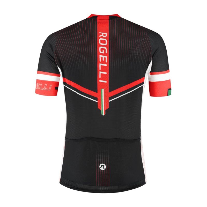 Dieses Herren-Sommer-Radtrikot gehört zur TOP-Kollektion des italienischen Herstellers Rogelli. Das verwendete Golfa-Gewebe wurde speziell für hohe Temperaturen entwickelt – seine feine Strickstruktur sorgt für hervorragenden Schweißtransport. Der durchgehende Reißverschluss ist verdeckt und endet in einem niedrigen Kragen. Seiteneinsätze, Achseln und Ärmelbündchen sind für optimale Belüftung mit atmungsaktivem Mesh gefüttert. Ein Silikonstreifen fixiert das Trikot am Saum. Eine geräumige, dreiteilige Tasche im unteren Rückenbereich ist ein praktisches Extra. Bewundern Sie Design und Funktionalität der Trikots von Profi-Radfahrern. Wir empfehlen, dieses Trikot mit der Gara Mostro Radhose aus derselben Serie zu kombinieren.