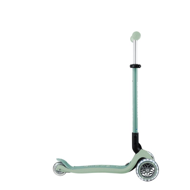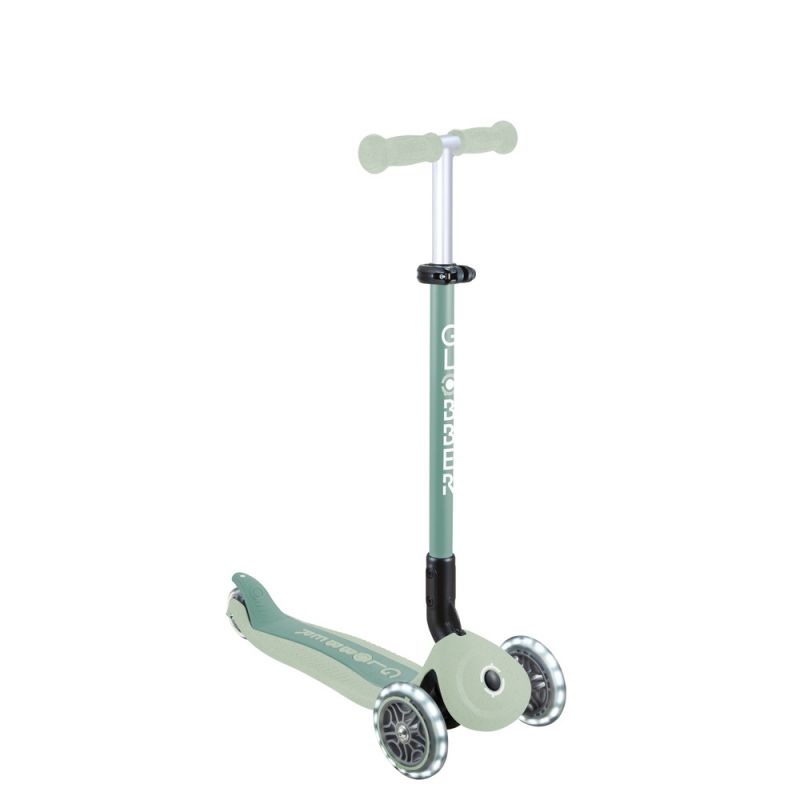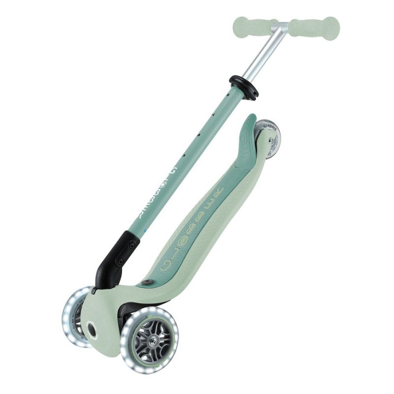 Der GO • UP Active Lights ECOLOGIC verfügt über das patentierte Lenkverriegelungssystem von Globber, das die Vorderräder des Rollers so sperrt, dass sie sich nur vorwärts und rückwärts bewegen, sodass Kinder beim Rollerfahren Selbstvertrauen gewinnen und gleichzeitig ihre Gleichgewichtsfähigkeiten entwickeln.