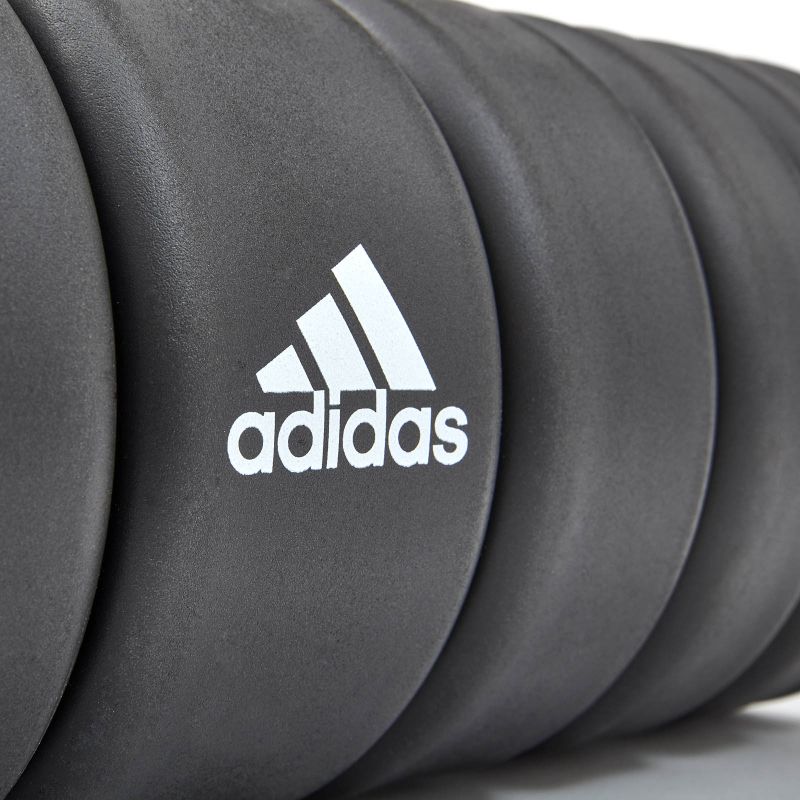 Eine hochwertige Schaumstoffrolle von adidas Training Hardware . Mit dieser Rolle können Sie Muskelkater selbst massieren und Gleichgewichts-, Koordinations-, Dehnungs- und Körperformungsübungen durchführen. Sie ist auch bei vielen Yoga-Posen hilfreich.