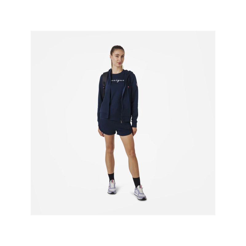 Wärme für jeden Tag, inspiriert von den Alpen. Der weiche Baumwollstoff des Damen-Hoodie-Logo-Sweatshirts mit durchgehendem Reißverschluss verleiht ihm ein lässiges Tragegefühl, während die detaillierten Details es von anderen Hoodies abheben.