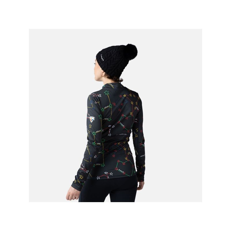 Tauchen Sie mit dem Rossignol Saturn-Oberteil auf der Piste in kosmischen Stil ein und bringen Sie Ihre Einzigartigkeit und Energie wie eine Farbkonstellation auf den verschneiten Hängen zum Ausdruck.