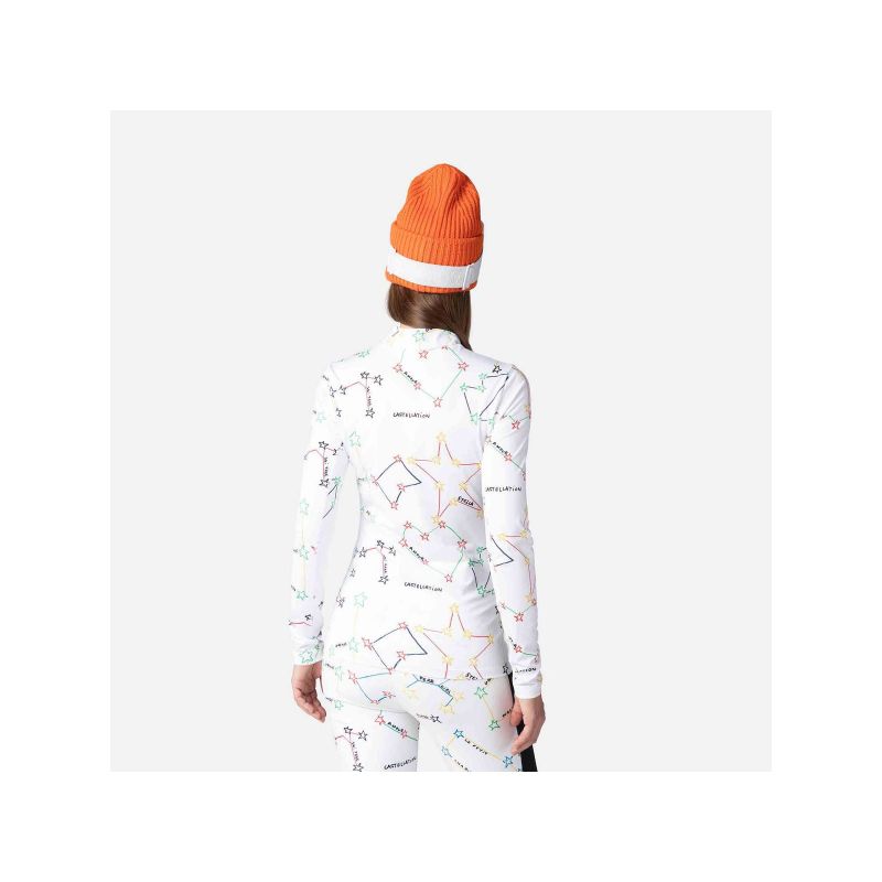 Tauchen Sie mit dem Rossignol Saturn-Oberteil auf der Piste in kosmischen Stil ein und bringen Sie Ihre Einzigartigkeit und Energie wie eine Farbkonstellation auf den verschneiten Hängen zum Ausdruck.
