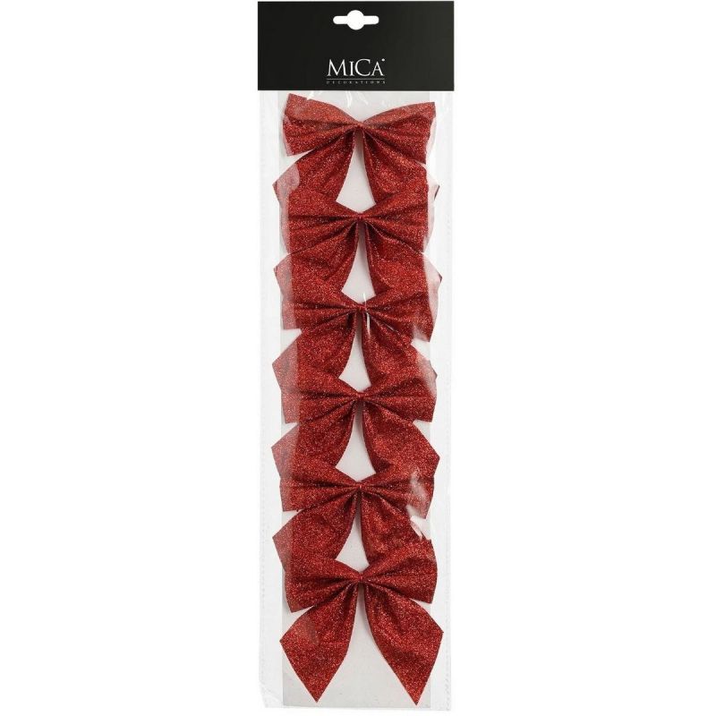 Verleihen Sie Ihren Feiertagen Glanz! Die roten, 10 x 12 cm großen Glimmer-Dekorschleifen (6 Stück) sind eine schnelle Möglichkeit, elegante und harmonische Arrangements für Ihren Weihnachtsbaum, Ihre Geschenke und Ihre Inneneinrichtung zu gestalten.