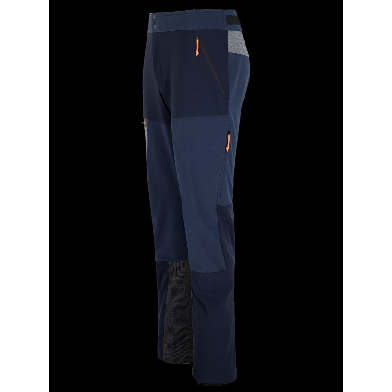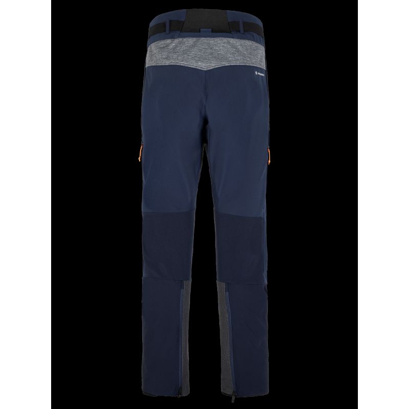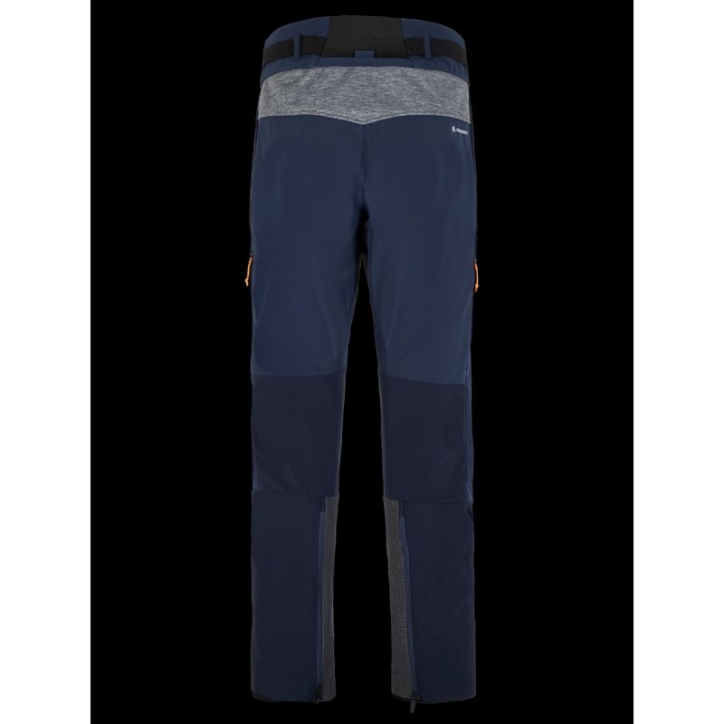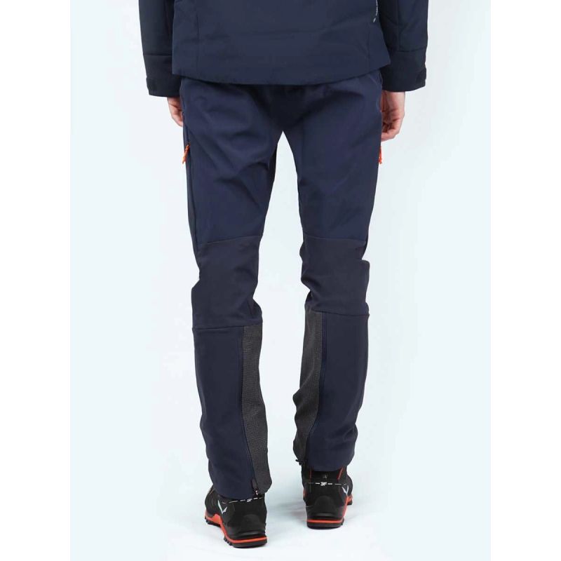 Die Hose verfügt über einen flachen, ergonomischen Bund mit verstellbarem Bund, der perfekt unter einen Klettergurt passt, zwei flache, leicht zugängliche Taschen und eine große Cargotasche. Seitliche Belüftungsöffnungen mit Reißverschluss sorgen für eine effiziente Luftzirkulation während der Aktivität. Doppelte Nähte erhöhen die Haltbarkeit, und die Unterschenkel mit Reißverschlüssen und integrierten Haken ermöglichen einen präzisen Sitz über den Stiefeln und minimieren so das Risiko des Kontakts mit Steigeisenklingen. Cordura®-Verstärkungen verhindern Schnitte und Abschürfungen, während interne Gamaschen das Eindringen von Schnee durch das Gewebe verhindern.