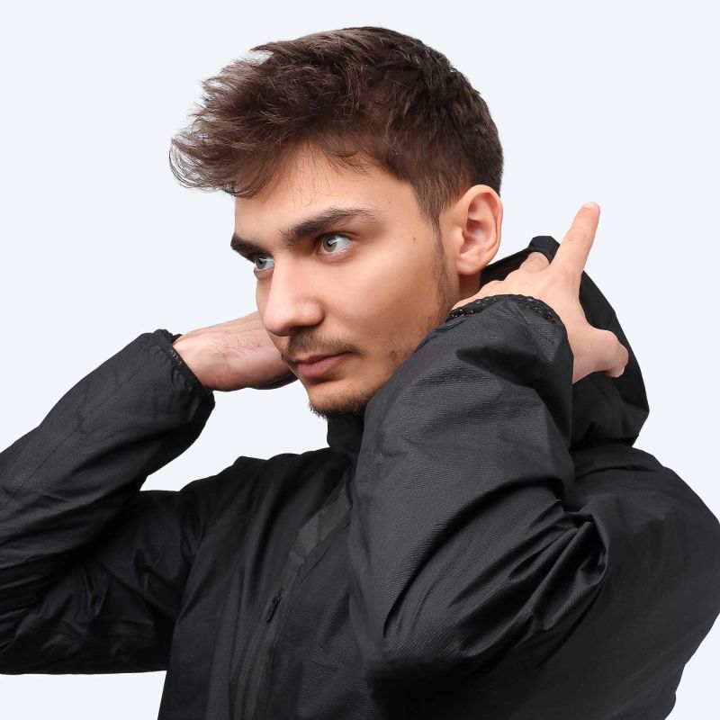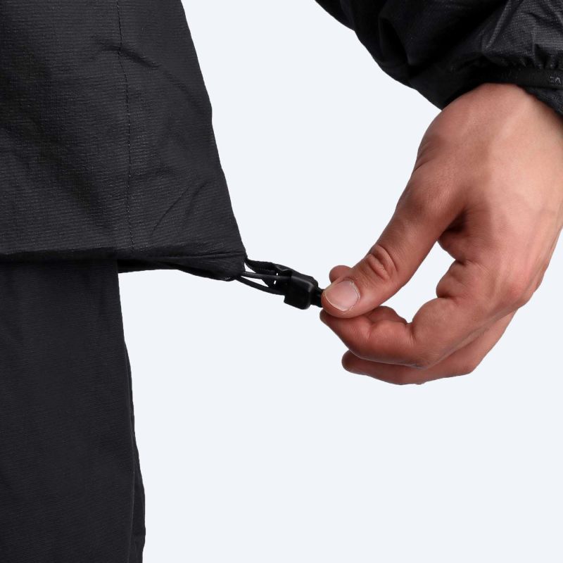 - Erstens bietet das außergewöhnlich atmungsaktive 2,5-Lagen-Obermaterial (Wassersäule: 10.000 mm, MVTR: 40.000 g/m²/24h) zuverlässigen Wetterschutz und ermöglicht ein gewichtssparendes Design. Wir versehen es mit einer PFC-freien DWR-Imprägnierung (Durable Water Repellent) und verschweißten Nähten.