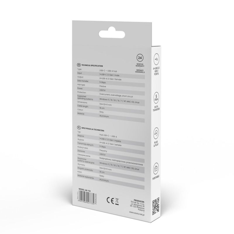 5. SAVIO AK-54 Hub USB-C - 4 x USB-A, Grau