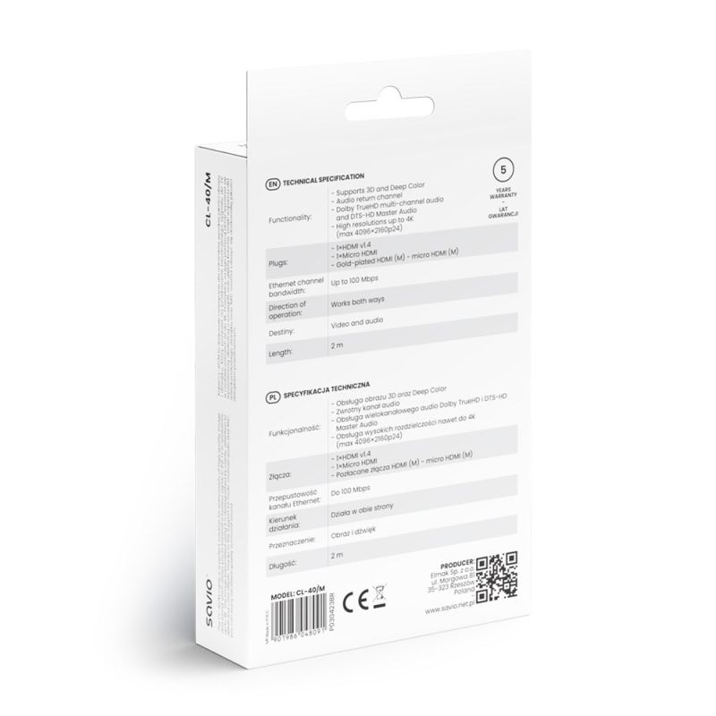 3. SAVIO HDMI-Kabel (M) – Micro-HDMI (M), 2 m, Schwarz, CL-40/M