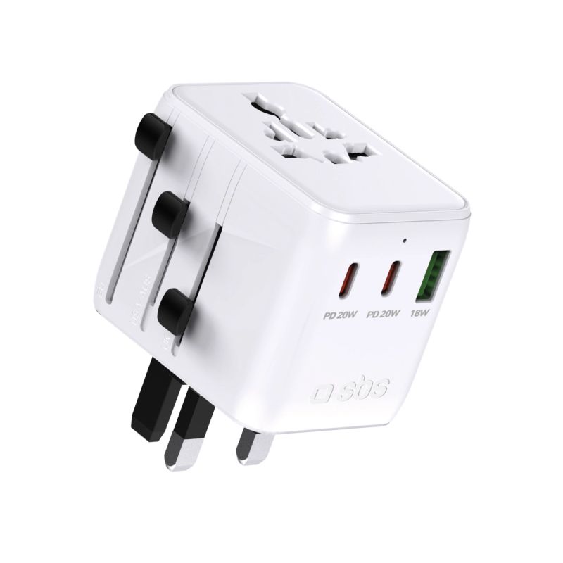 SBS Reiseadapter 2xUSB-C 1xUSB-A Universal - Weiß