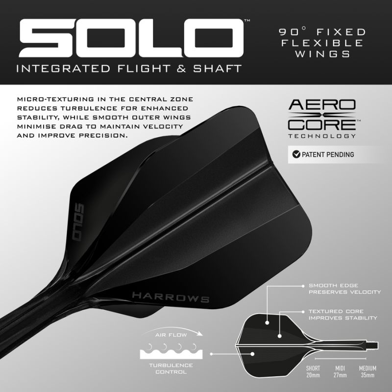 Harrows Solo ist ein modernes, integriertes Schlägerblatt- und Schaftsystem, das für Spieler entwickelt wurde, die maximale Stabilität, Konstanz und Langlebigkeit suchen. Die einteilige Konstruktion bietet die perfekte Kombination aus Aerodynamik und Haltbarkeit.