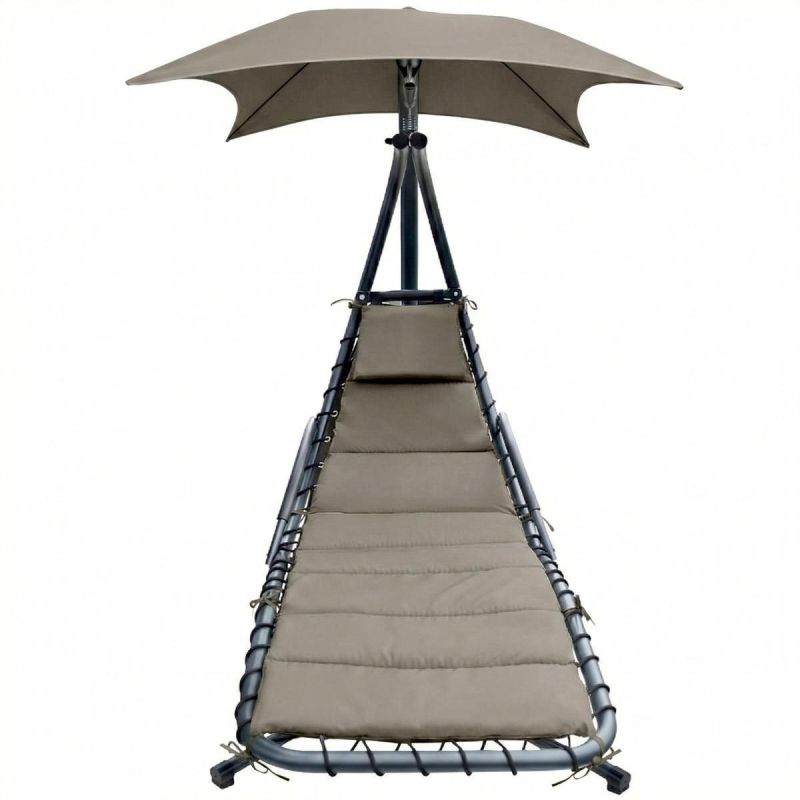 Der robuste und dicke Stahlrahmen trägt eine maximale Last von bis zu 130 kg, und der mitgelieferte Sonnenschirm schützt Sie vor der starken Sonne.