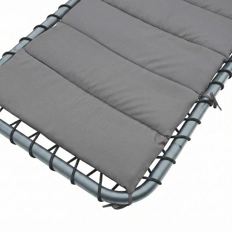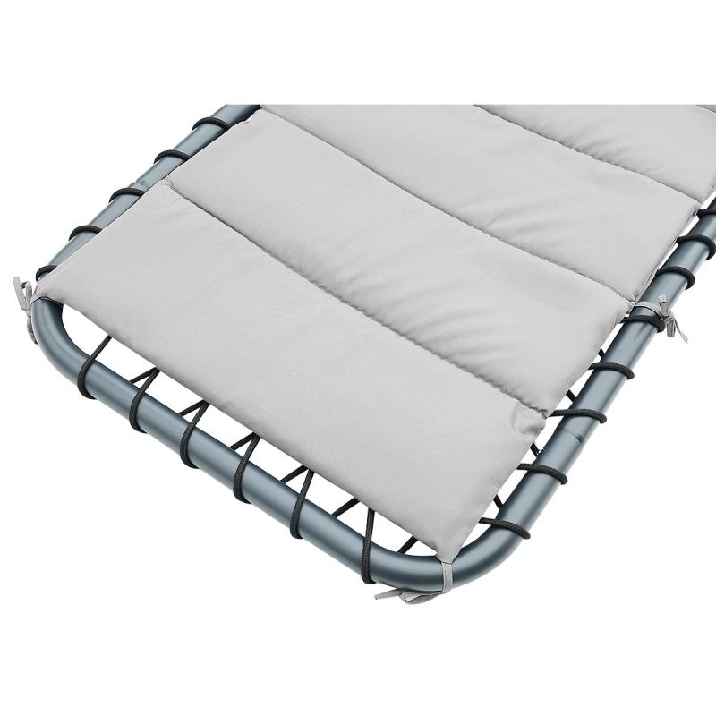 - Materialien: pulverbeschichteter Stahl, Matratzenbezug – 180 g/m² Polyester, Kissen – 160 g/m² Polyester mit Füllung, Textilene 2x1