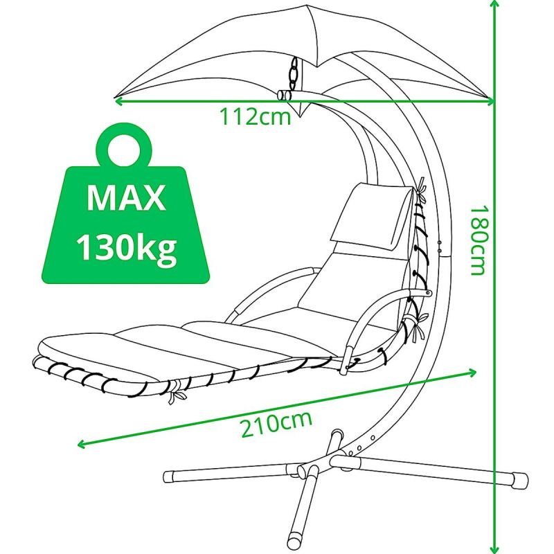 Der robuste und dicke Stahlrahmen trägt eine maximale Last von bis zu 130 kg, und der mitgelieferte Sonnenschirm schützt Sie vor der starken Sonne.