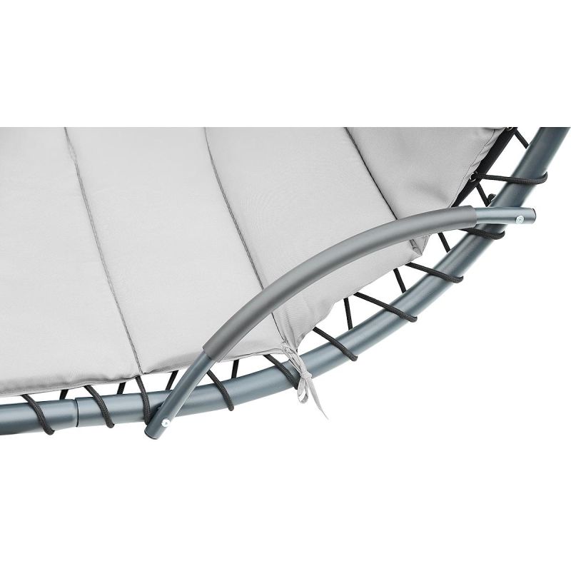 Verschönern Sie Ihren Garten, Ihr Grundstück, Ihre Terrasse oder sogar Ihre Wohnung. Die attraktive und moderne Farbpalette verleiht jedem Ambiente Charme. Sie können die Schaukel das ganze Jahr über nutzen: im Frühling und Sommer draußen und im Herbst und Winter im Wintergarten. Nach dem Abnehmen von Sonnenschirm und Sessel lässt sich ein Kokon oder ein filigraner Sessel am Gestell befestigen.