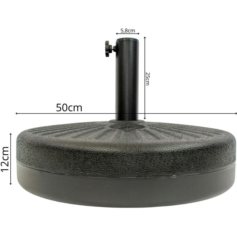 Der 22 kg schwere, mit Wasser befüllbare Sonnenschirmständer aus Kunststoff ist die ideale Lösung für alle, die in ihrem Garten Wert auf Stabilität, Langlebigkeit und ein ansprechendes Design legen. Dank seiner robusten Konstruktion, der einfachen Handhabung und des modernen Designs sorgt dieser Ständer für komfortable und sichere Entspannung im Freien – die ganze Saison lang.
