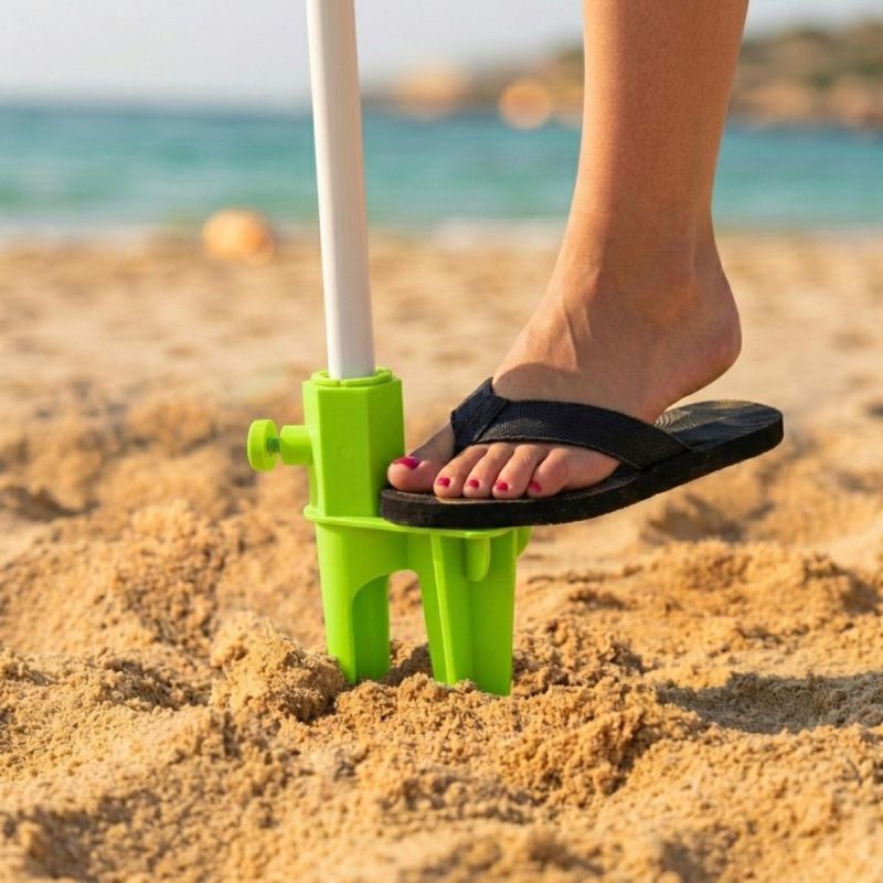 Der 28 cm große grüne Sonnenschirmständer ist ein äußerst praktisches und funktionales Zubehör, das Strandsonnenschirmbenutzern viele Vorteile bietet.