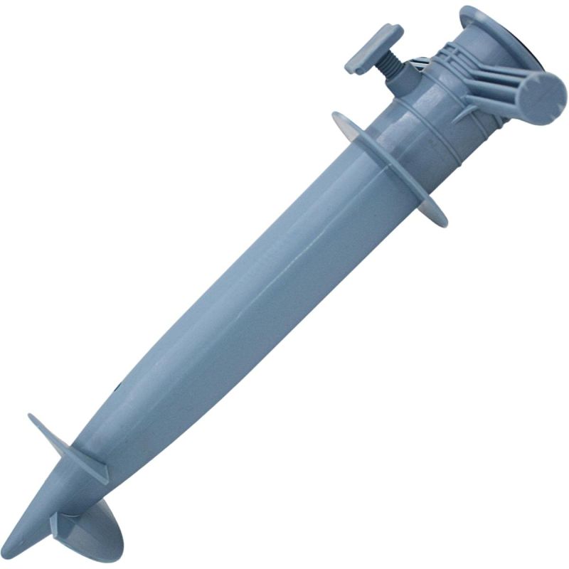 - Mit dem Schraubspieß lässt sich die Halterung fest im Sand verankern.