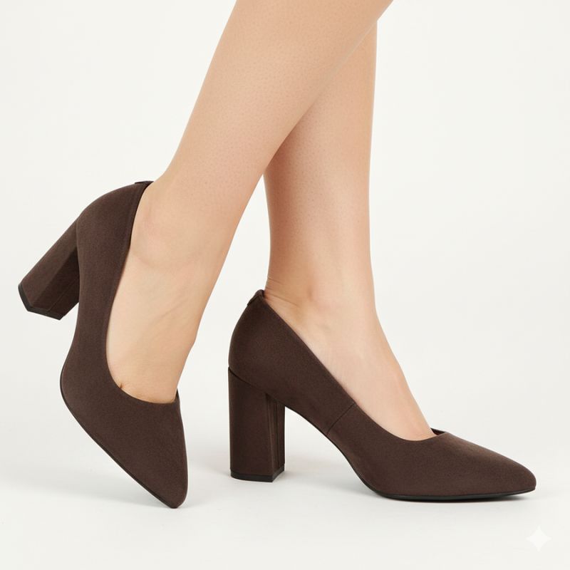 Schokoladenbraune Wildlederpumps mit spitzer Zehenpartie von Sergio Leone (Modell PB216)