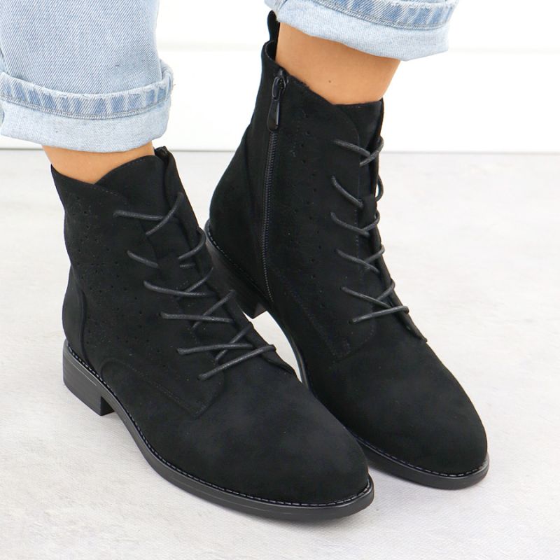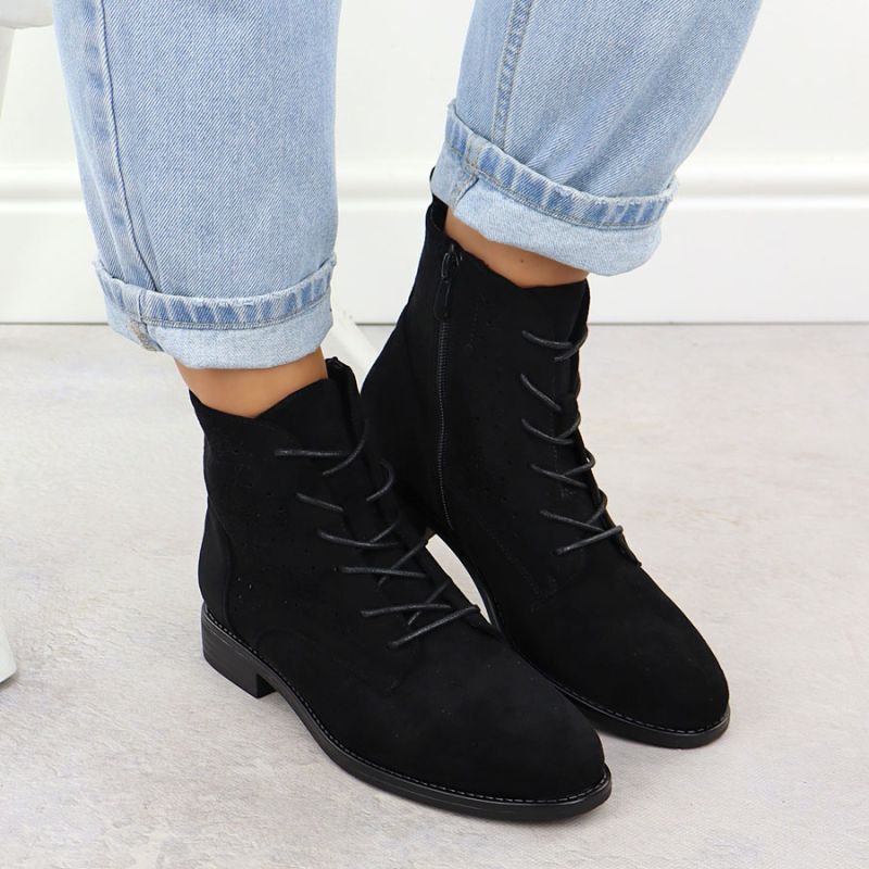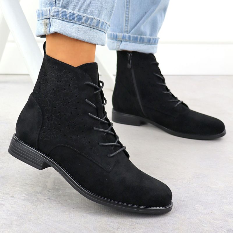 Schwarze Damen-Ankle-Boots aus durchbrochenem Wildleder, S.Barski HY52-535