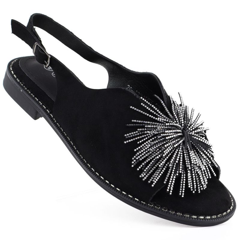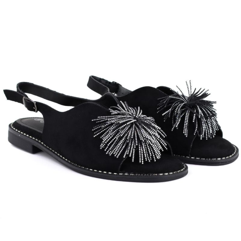 2. Schwarze Damen-Sandalen mit geschlossenem Absatz und Pailletten, Modell Potocki 43349