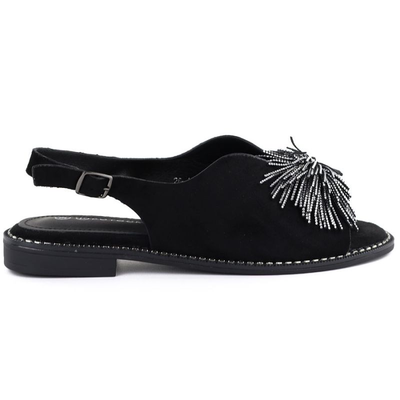 3. Schwarze Damen-Sandalen mit geschlossenem Absatz und Pailletten, Modell Potocki 43349