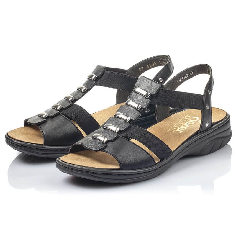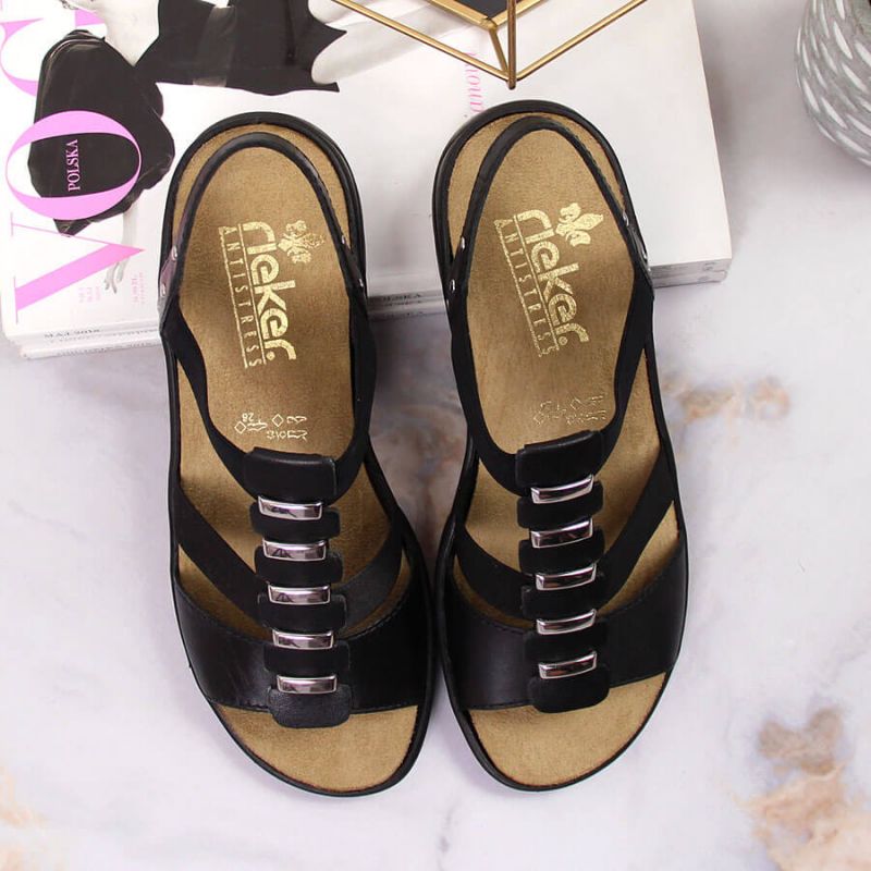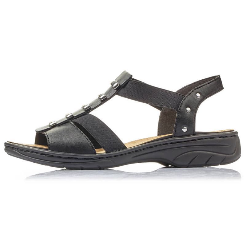 Damen Ledersandalen, schwarz, Roman, Rieker 64580