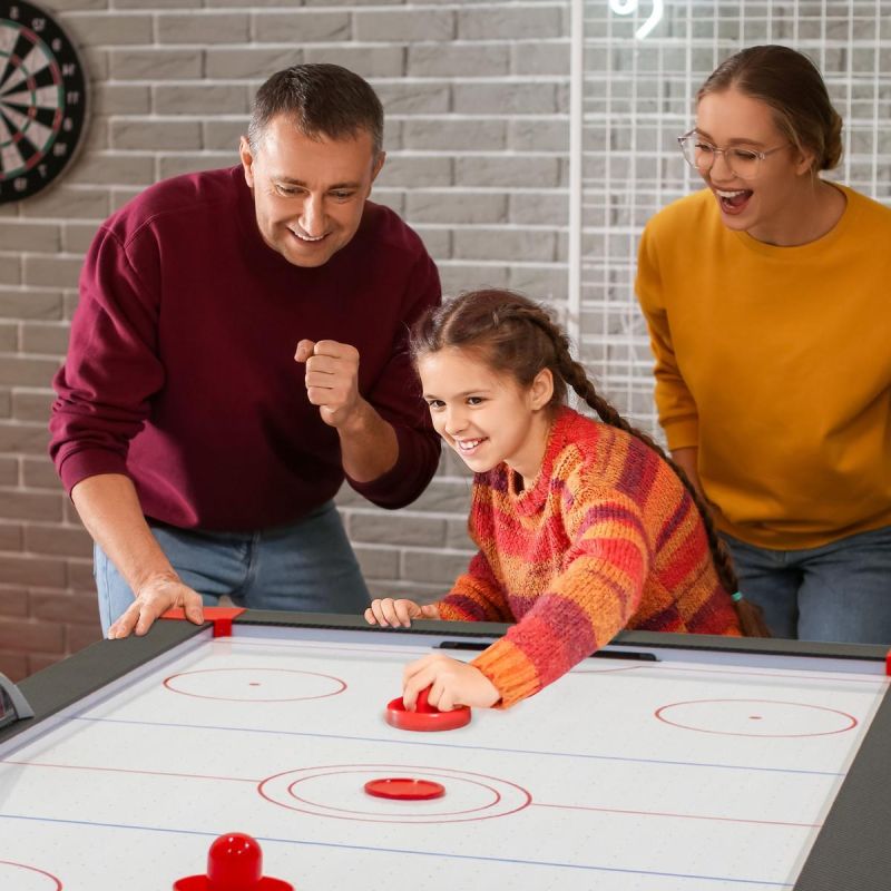 Unser Airhockey-Set vereint modernes Design mit unvergesslichem Spielspaß. Ideal für Familien, Freunde und alle Gaming-Begeisterten! Die schwarze Farbe verleiht jedem Raum eine moderne Note. Es ist nicht nur ein Spiel, sondern auch ein dekoratives Element.