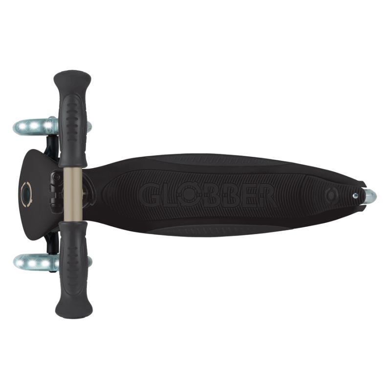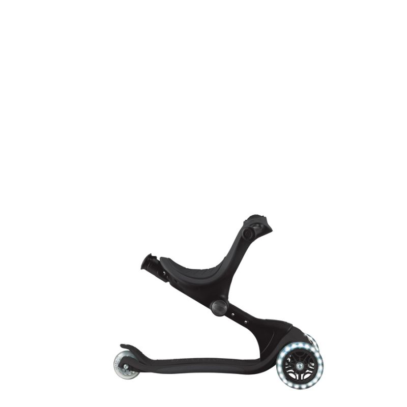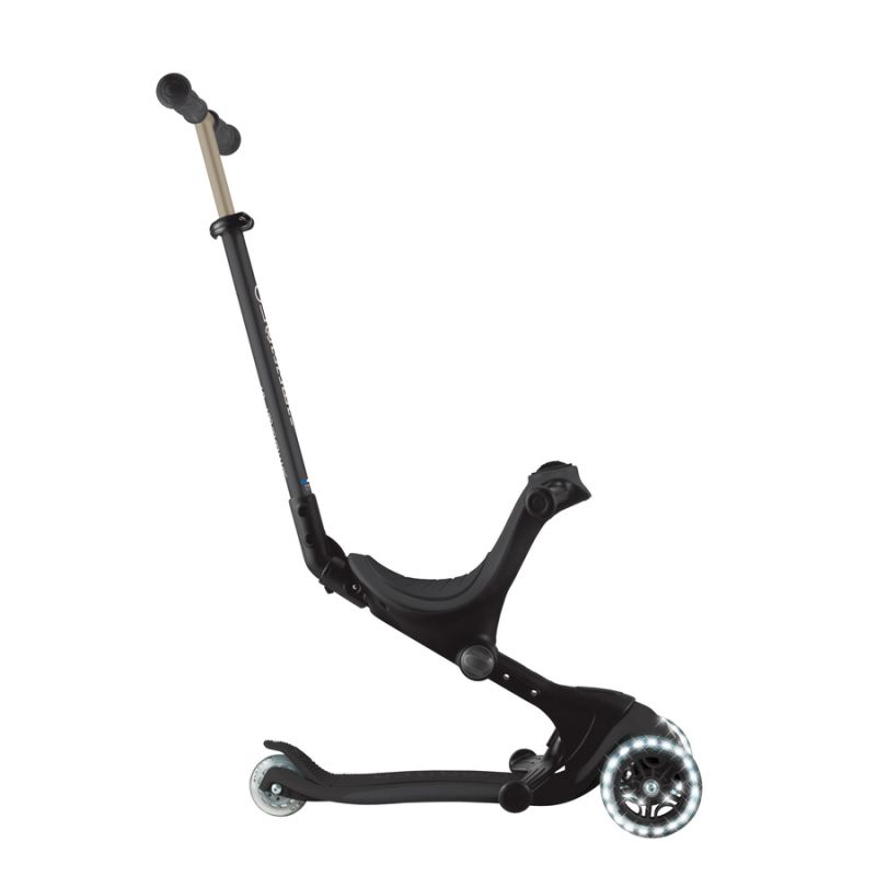 GO•UP DELUXE LIGHTS verfügt über Einstellmöglichkeiten für maximalen Komfort: einen 3-fach höhenverstellbaren TPR-Sitz (verstellbar mit einem werkzeuglosen Drehknopf an der Seite) und einen 4-fach höhenverstellbaren T-Lenker.