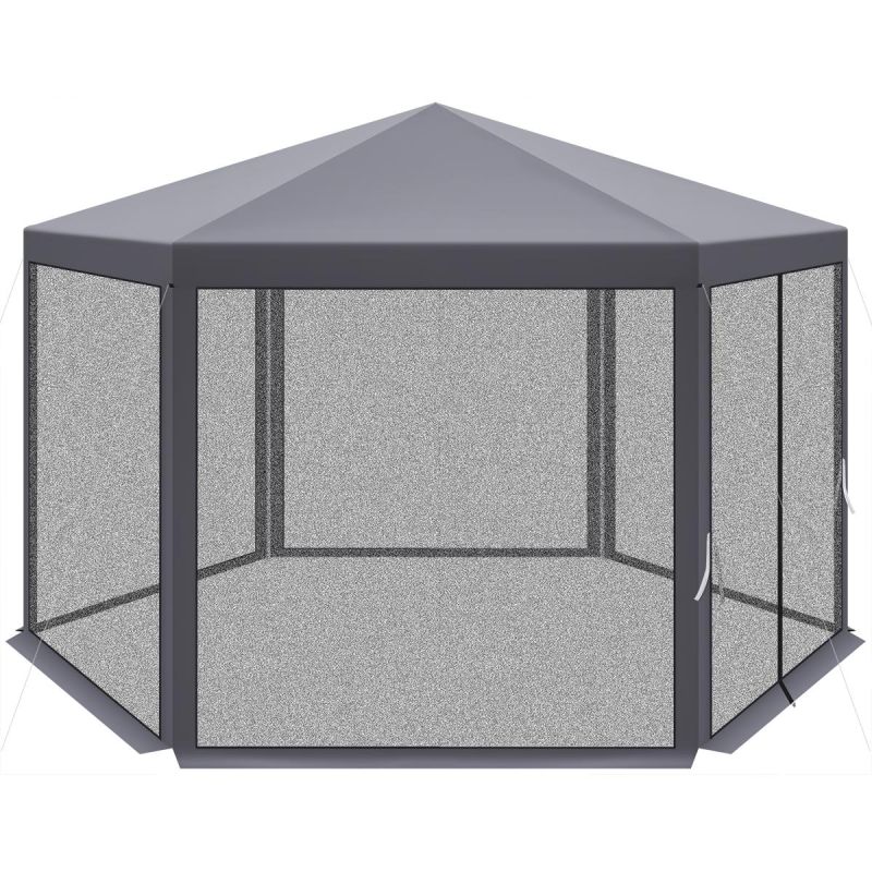 Sechseckiger Gartenpavillon 2x2x2x2,5 m mit Moskitonetz, Grau