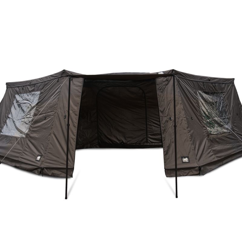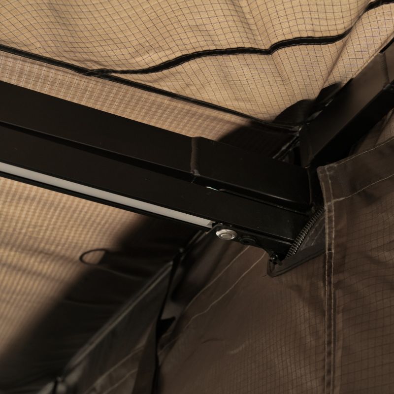 - Das Dach erstreckt sich um 180° um das Auto und schafft so einen großen, schattigen Raum, in dem Sie an heißen Tagen entspannen können.