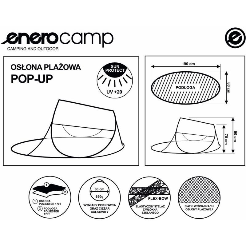 Planen Sie einen entspannten Tag am Strand oder See? Machen Sie Ihren Aufenthalt noch angenehmer und schützen Sie sich vor der prallen Sonne, dem Wind und den Blicken anderer Strandbesucher. Genießen Sie Ihre Privatsphäre mit dem selbstaufblasenden Strandzelt ENERO CAMP (190 x 80 x 90/70 cm).