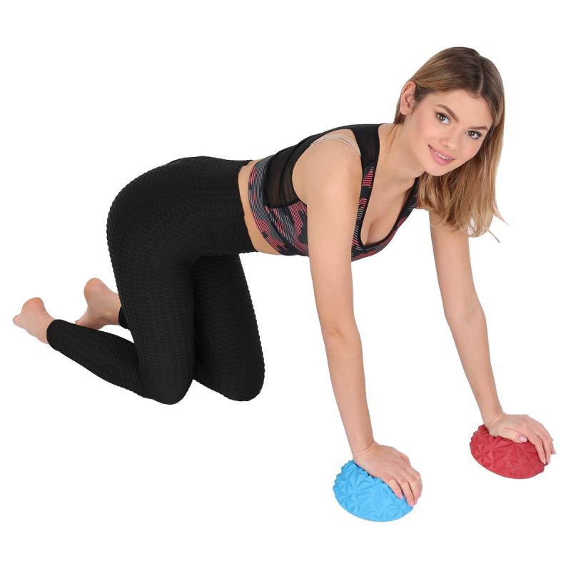 Dicke, rautenförmige Noppen auf der Oberfläche der Halbkugel stimulieren die Sinnesrezeptoren und machen Übungen damit zu einer hervorragenden Form der Akupressur. Da sich nicht jeder regelmäßige Besuche bei einem Spezialisten leisten kann, ermöglicht die sensorische Massage-Halbkugel eine wohltuende Selbstmassage zu Hause. Die Kugel hat einen Durchmesser von 17 cm und zahlreiche Noppen, die den passenden Druck auf den Körper ausüben. Ihre Dichte gewährleistet eine optimale Druckverteilung.