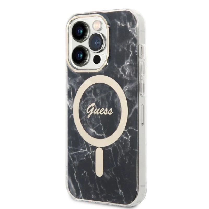 Set Guess GUBPP14LHMEACSK Hülle + Ladegerät iPhone 14 Pro 6.1" schwarz/schwarz Hartschale Marble MagSafe