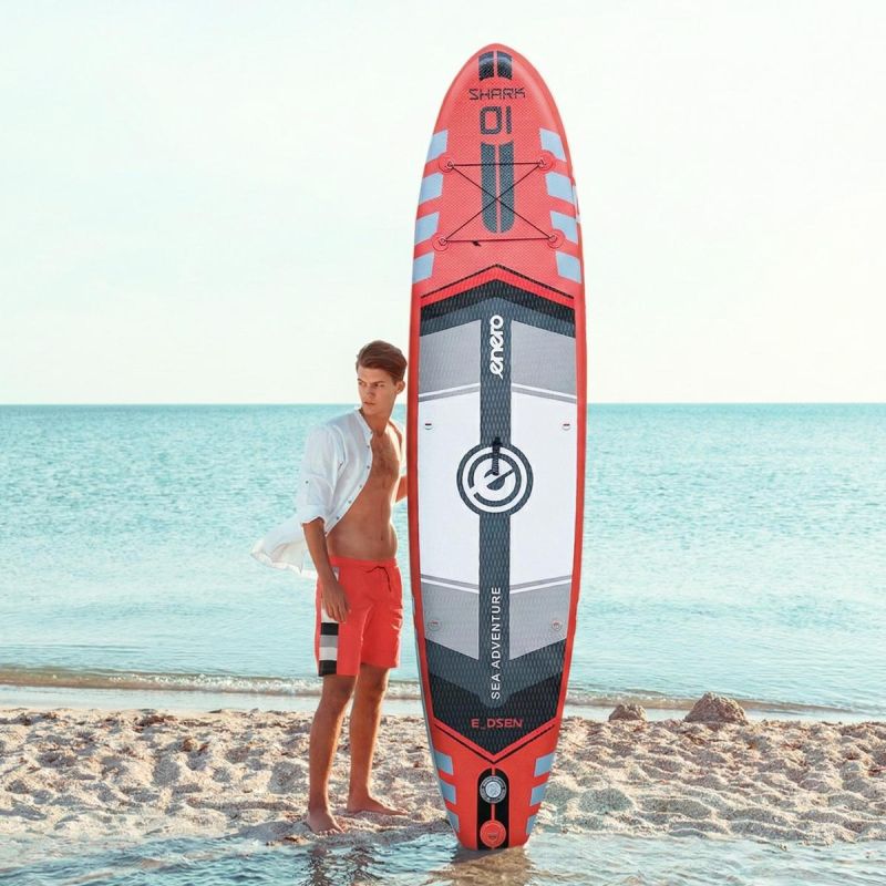 SET - 150KG AUFBLASBARES SUP-BOARD ENERO 320x81x15CM SHARK ist ein stabiles, langlebiges und einsatzbereites Board - perfekt für See, Meer und Urlaubsreisen!