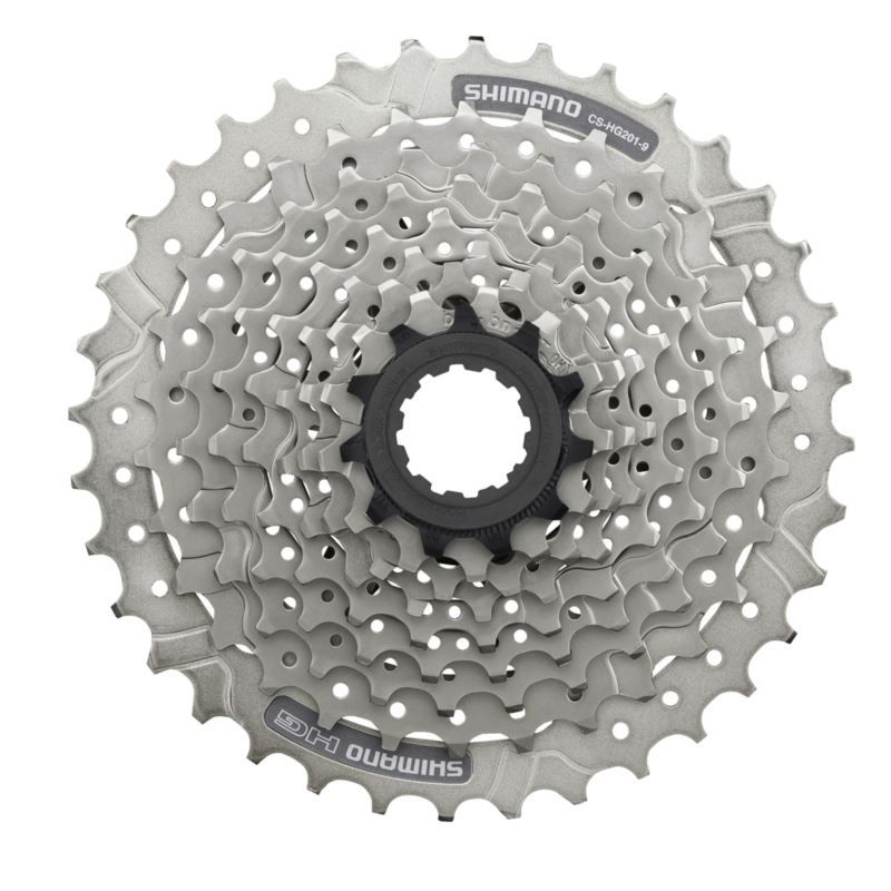 Die HG201-9 Kassette ist ideal für 9-fach Mountainbike-Antriebe. Sie verfügt über die HYPERGLIDE-Schalttechnologie und eine silberne Oberfläche.