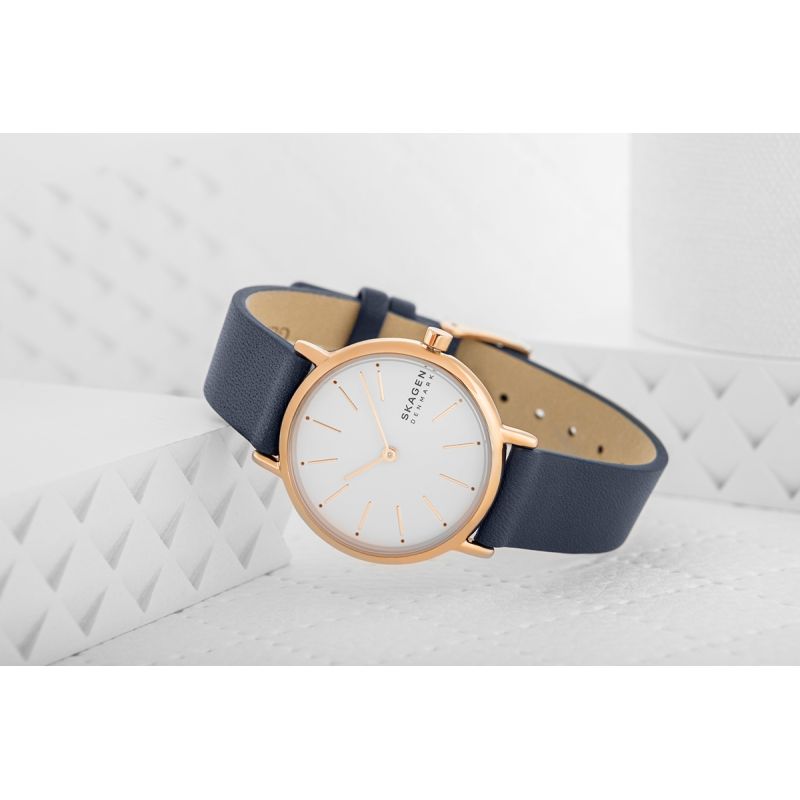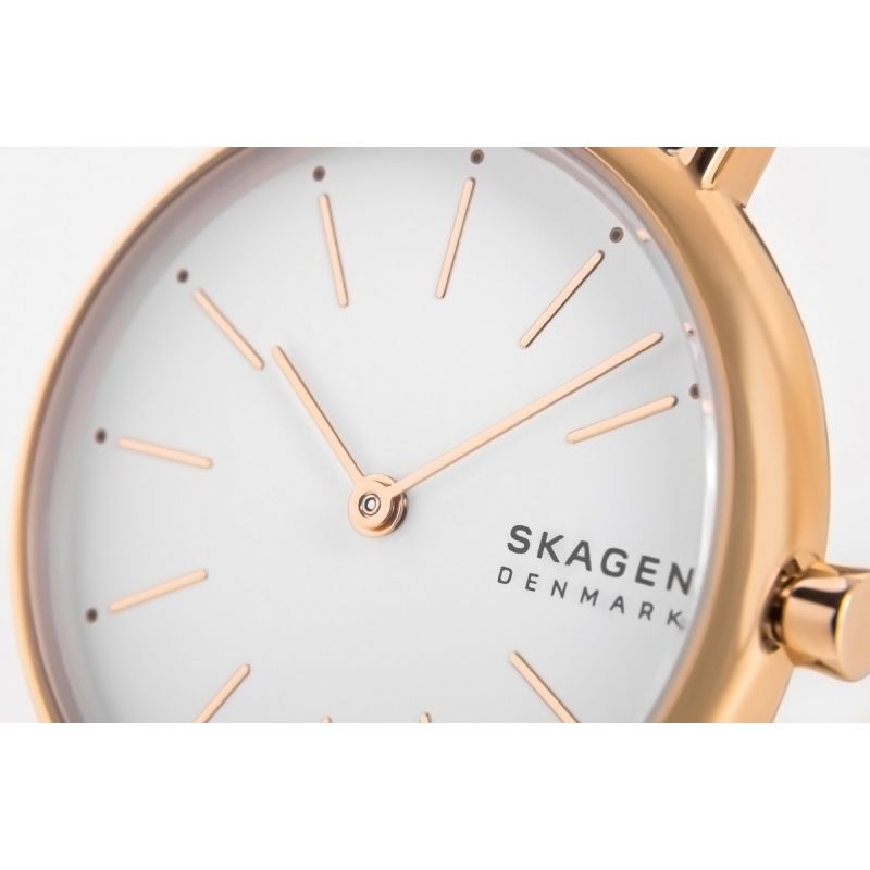 Die SKAGEN Signatur verkörpert die perfekte Balance: Ein klares, transparentes Zifferblatt, schlanke Zeiger und dezente Indizes sorgen dafür, dass die Uhr nicht mit überflüssigen Details überladen wirkt, sondern durch ihre raffinierte Schlichtheit besticht. Die Skagen Signatur benötigt keine aufwendigen Verzierungen, denn ihre Qualität und ihr Design sprechen für sich. Diese Uhr protzt nicht mit Luxus, sondern strahlt ihn auf natürliche und mühelose Weise aus.