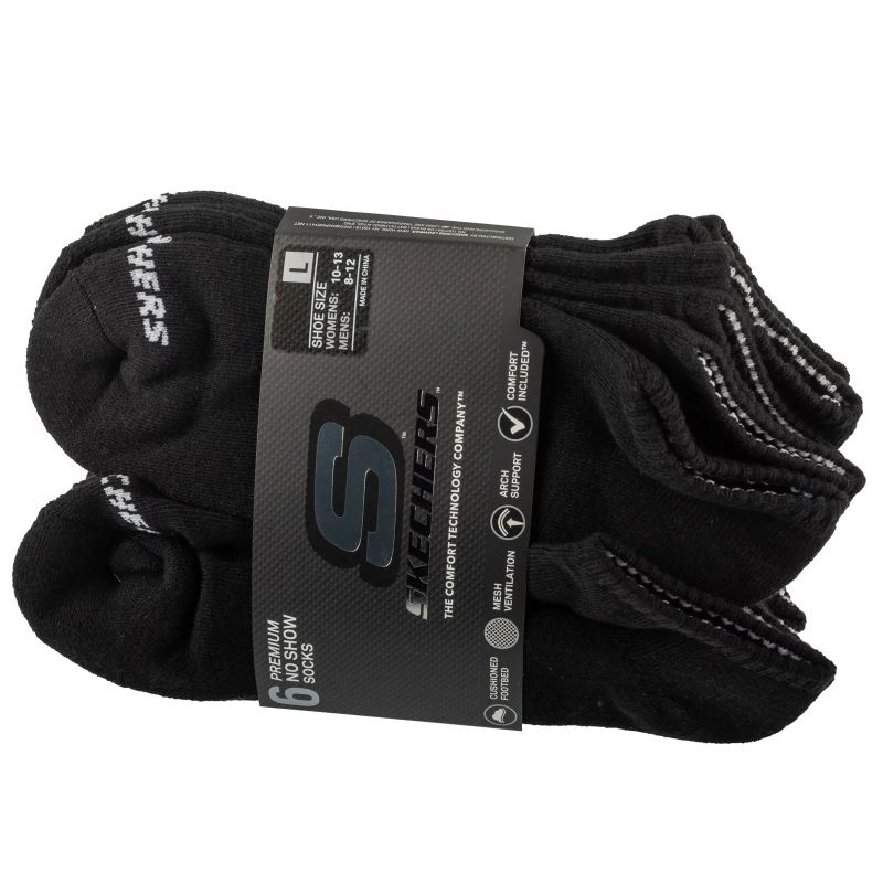Skechers 6er-Pack Unisex 1/2 Terry Crew Socken S118210-BLK Schwarz 41-46