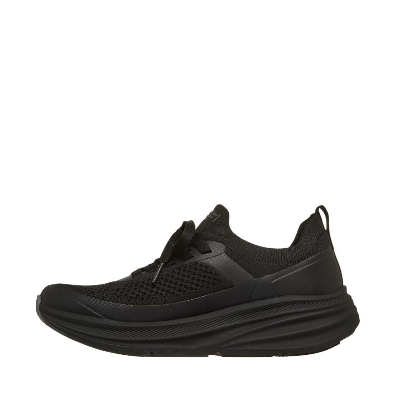 Skechers Bobs Skillz Too Vital Damenschuhe Schwarz 117759 BBK. Diese bequemen Skechers Damenschuhe sind perfekt für jeden Tag. Das Stretch Fit® Strickobermaterial passt sich Ihrem Fuß optimal an. Dank des Schlupfdesigns mit Schnürsenkeln sitzen sie sicher und stabil. Das Skechers Memory Foam Fußbett sorgt für flexible, profilierte Laufsohle mit guter Traktion, und der 5 cm hohe Absatz verleiht Ihnen eine elegante Silhouette. Die Schuhe sind maschinenwaschbar und bestehen zu 100 % aus veganen Materialien.