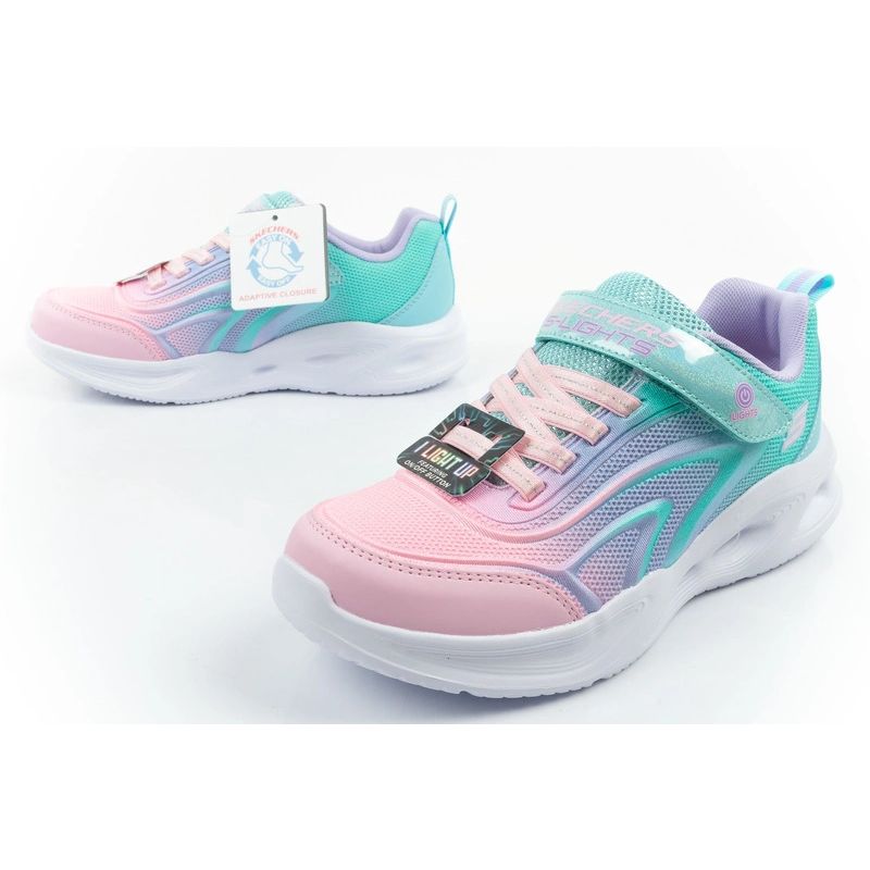 Die Skechers S Lights Sola Glow - Color Breeze Aqua/Multi (303713L/AQMT) Kinderschuhe sind eine stylische und bequeme Option, perfekt für aktive Mädchen.