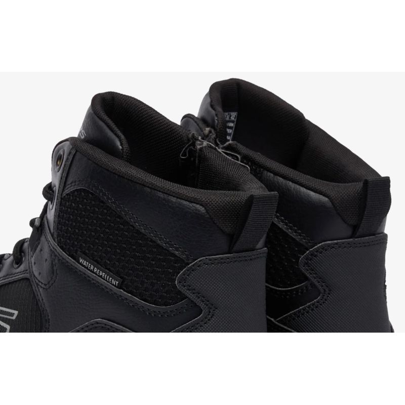 Skechers-Schuhe vereinen raffinierte Elemente mit einer robusten Konstruktion und sind ein treuer Begleiter, der bei Spaziergängen auf Waldwegen, Stadtstraßen oder Bergpfaden für lang anhaltenden Komfort sorgt. Das verlängerte Obermaterial besteht aus Öko-Leder und Textil. Die wasserabweisende Technologie reduziert die Feuchtigkeitsaufnahme deutlich, erleichtert die Reinigung und minimiert das Fleckenrisiko. Die Memory Foam-Innensohle komprimiert sich unter dem Gewicht und der Wärme des Fußes und sorgt so für eine anatomische Passform. Ein praktischer Haltegriff an der Rückseite sorgt für zusätzlichen Tragekomfort. Die Gummilaufsohle hat ein rutschfestes Profil.