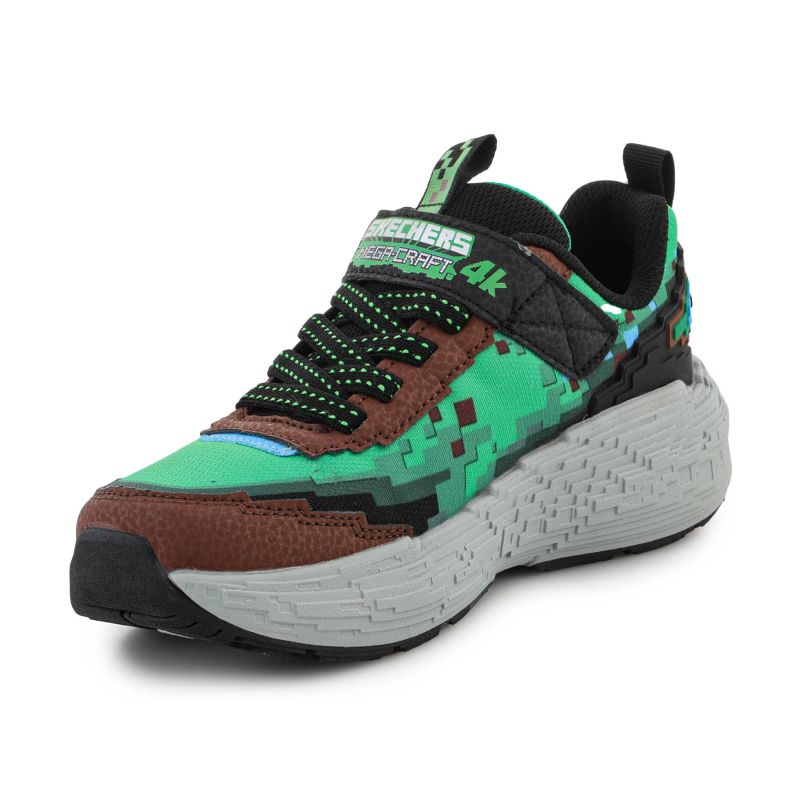 Die Skechers Mega-Craft 4K 402160L-BRMT in Braun/Mehrfarbig sind stylische Kindersneaker, die sportliches Design mit hohem Tragekomfort verbinden. Das Obermaterial aus Synthetik und Textil ist mit einem einzigartigen Pixelprint verziert, der den Schuhen einen modernen Gaming-Look verleiht – besonders ansprechend für jüngere Kinder.