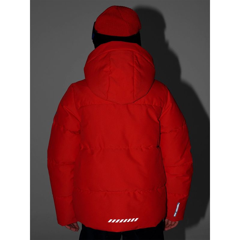 Funktionale Details wie ein einseitiger Hauptreißverschluss, seitliche Reißverschlusstaschen und ein Skipassfach erleichtern die Nutzung auf der Piste. Reflektierende Elemente verbessern die Sichtbarkeit bei schlechten Lichtverhältnissen.