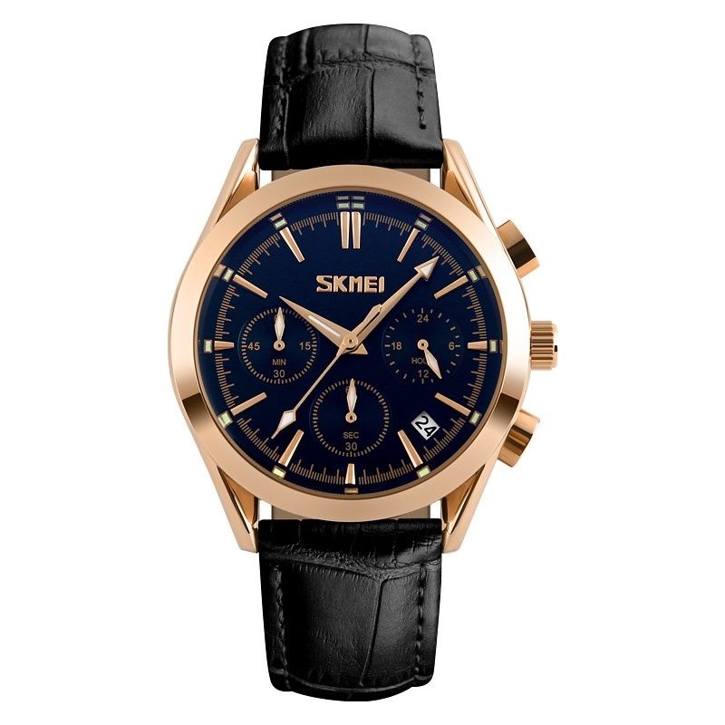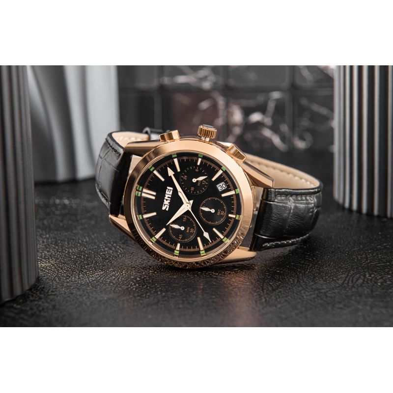 Die Skmei 9127 ist eine Uhr, die klassische Eleganz mit modernem Charakter vereint. Funktionen wie Chronograph, Datumsanzeige und 24-Stunden-Anzeige machen dieses Modell nicht nur zu einem Schmuckstück, sondern auch zu einem praktischen Begleiter für den Mann, der Wert auf Klasse und Präzision legt.