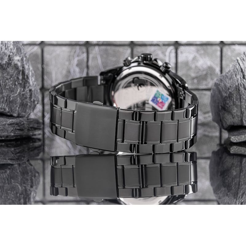 Das matte Zifferblatt verkörpert pure Männlichkeit – robust, kraftvoll und kompromisslos. Um es herum entfaltet sich ein Tachymeter wie eine Startbahn, bereit, Ihre Erfolge zu zählen – sportlicher Spirit und klassische Eleganz in perfekter Harmonie. Die massiven Zeiger und die soliden, fluoreszierenden Indizes vermitteln Präzision und Zuverlässigkeit – ein Versprechen, auf das Sie sich immer verlassen können.